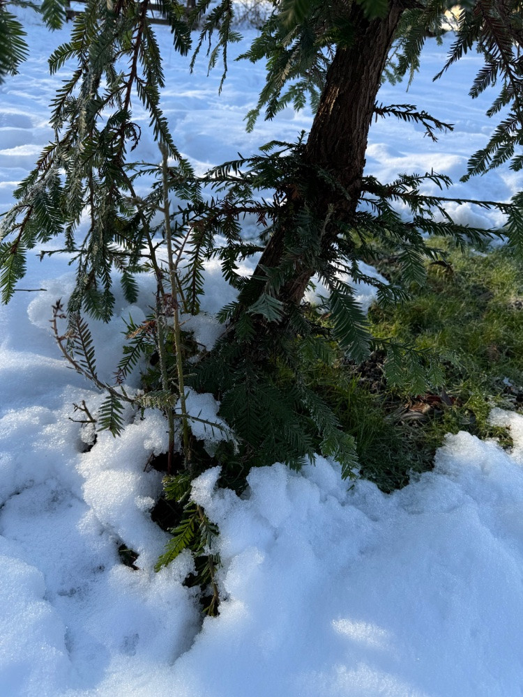 jetzt ist der Moment, wo sowohl Berg- als auch Küstenmammutbaum ihre ältesten Triebe abwerfen