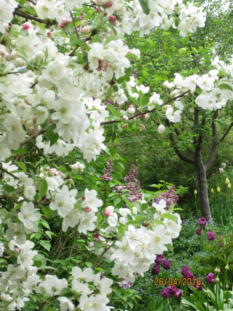 Ob er jetzt wirklich soviel länger blüht als andere Apfelbäume, vermag ich gar nicht zu sagen. Auf jeden Fall ist er enorm reichblütig und die Blütenknospen öffnen sich nach und nach. Ein sehr schönes Gehölz.