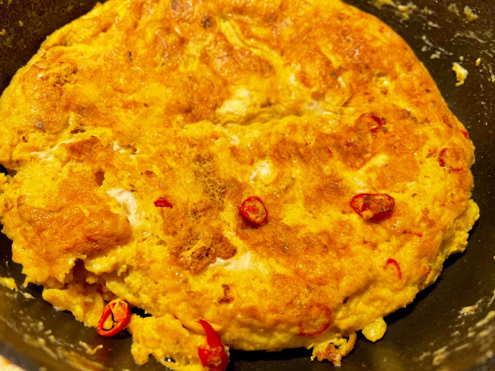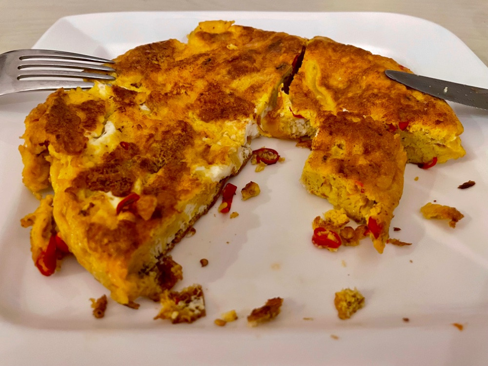 und beim omelette schluckt das ei erstaunlich effektiv schärfe, fast hätte ich deutlich mehr chili gewollt.