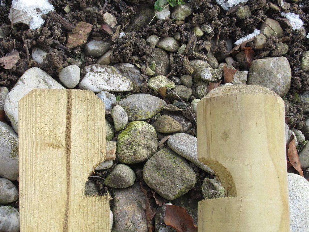 Zu den Komposterlatten möchte ich noch eine Info nachliefern. Die Konstruktion ist deshalb so stabil und robust, weil die Einschnitte zum Zusammenfügen der Latten deren Form entsprechen. Ich hoffe, das Bild erklärt was gemeint ist.