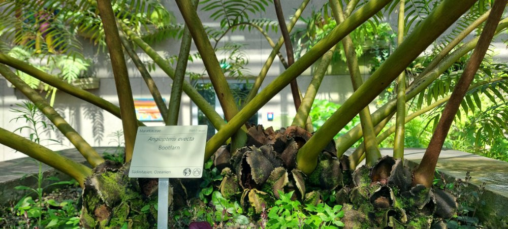 Anbei Fotos aus Magdeburg, aus der Gruson Gewächshäuser, mit ein Stattlichen Exemplar von Bootsfarn.