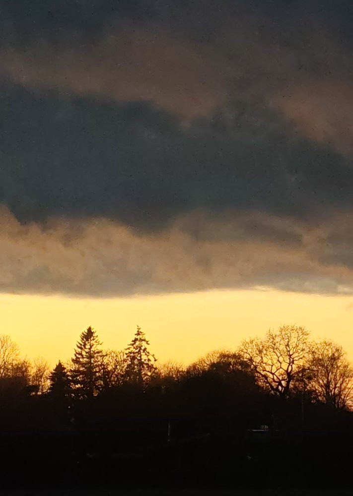 Gestern gab es hier geteilten Abendhimmel - eine dicke Wolkenfront über einem herrlich gelben Sonnenuntergang. Leider konnte ich das nicht so gut einfangen :P