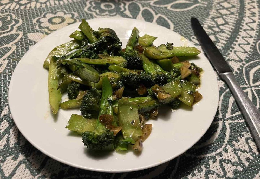 Brokkoli nicht gekocht, sondern chinesisch gebraten mit Knoblauch, etwas Chili, Gemüsebrühe, Austernsoße und Sesamöl sowie Basmatireis "Imperial" gedämpft mit Butter und Reisparfüm zum Amarone della Valpolicella classico 2014.
