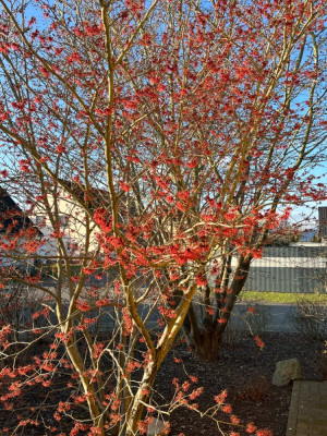 @Kranich: Deine 'Feuerzauber' hat wahrlich einen "feurigen" Auftritt bei diesem wunderbar sonnigen Winterwetter. Die dunkelroten bzw. violetten Zaubernüssen überzeugen mich nicht so ganz, aber dieses leuchtende Rot ist wunderbar!