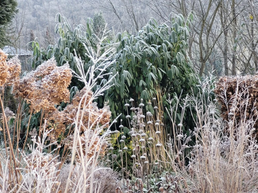 Ja, gut daß trotz des Dauerregens im November noch einige starke Strukturen von Gräsern und Stauden übrig geblieben sind.