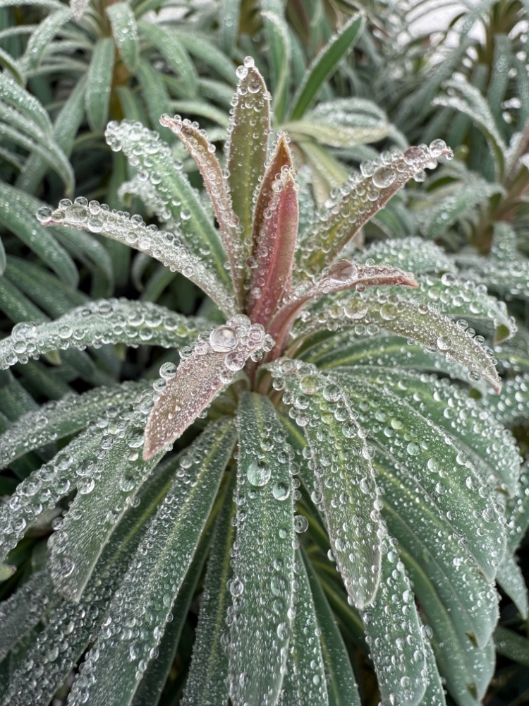 Da sehe ich doch eine euphorbia auf dem Bild dann hier ein Bild von heute Morgen im Hintergrund eine braune nepeta