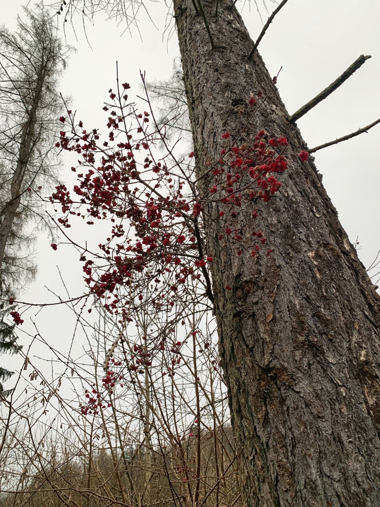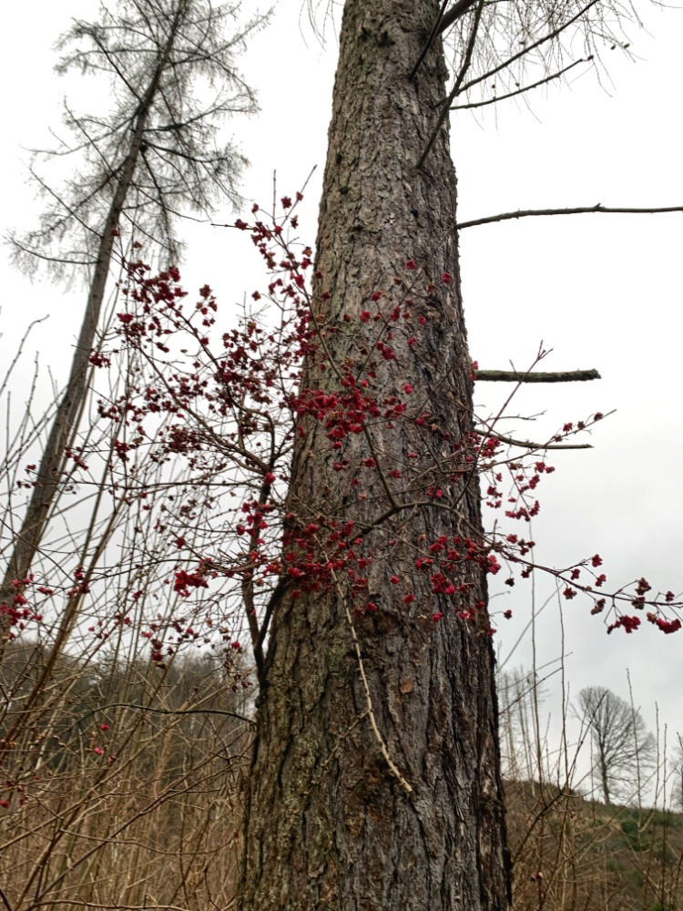 Am Naturstandort wächst das pfaffenhütchen hier am Fuße einer Lärche scheint also Wurzel Druck größter Gehölze zu ertragen