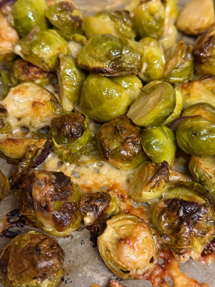 Ich wollte aber so sehr Rosenkohl und habe ich doch gemacht. Für mich. Ich wollte nicht so knusprig, wie in Rezept steht, deswegen am Anfang Schlückchen Wasser dazu gegeben und etwas länger gebacken.