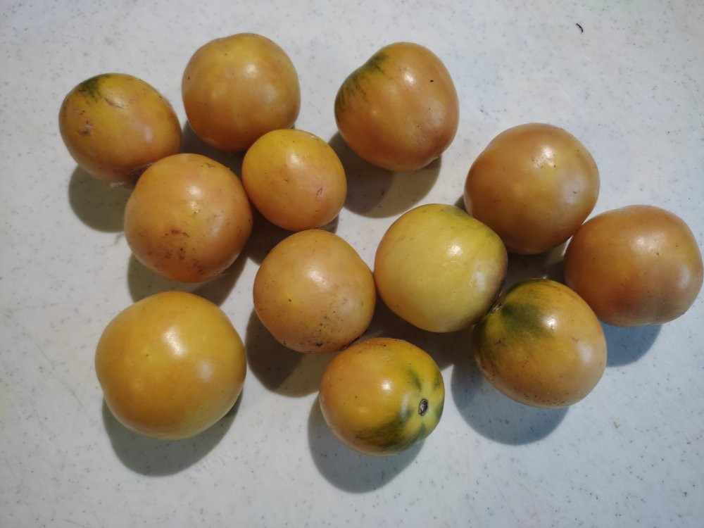 So, heute habe ich dann noch einen Großteil der verbliebenen nachgereiften Tomaten gegessen. Optisch schon etwas schrumpelig, geschmacklich auch nicht mehr der Hit. Nur ein paar wenige waren wirklich lecker (wahrscheinlich Black Cherry und Sunrise Bumblebee). Auf dem Bild müssten Blush Tiger, eine Pink Tiger, zwei Sunrise Bumblebee, drei Sunviva und eine Amber Keyes sein, beim Rest weiß ich es nicht. Dann gibt es noch ein paar schrumplige Philaminas (nicht auf dem Bild), vielleicht gehen die auch direkt in den Biomüll, mal sehen. Aber hübsch sehen die Farben ja aus in dieser trüben Jahreszeit