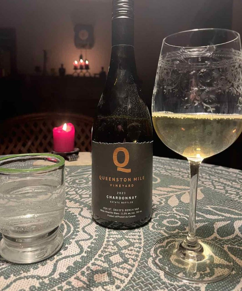 Argentinische Rotgarnelen, asiatisch mariniert und gebraten, sowie Gerstl/Perlgraupen-Risotto, mit Curcuma gewürzt und mit Schalotten, Schnittlauch, Butter und Weißwein zum Chardonnay 2021 aus Kanada