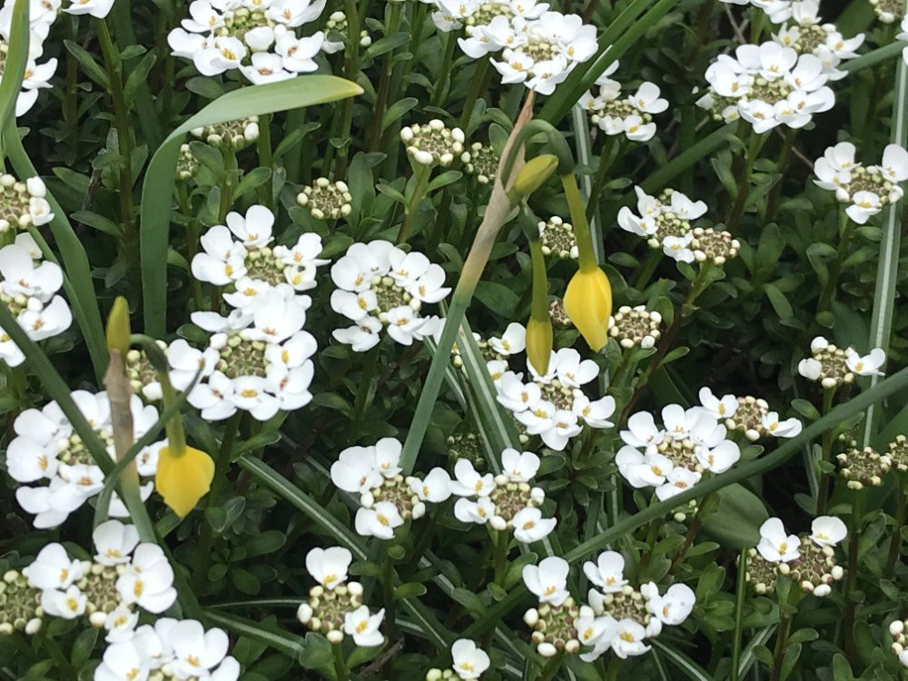 Kaunis, wie schön und dicht die Frühlingsblüher sind. Es sind alles die einziehenden Pflanzen. Wie sieht die Fläche im Sommer aus?