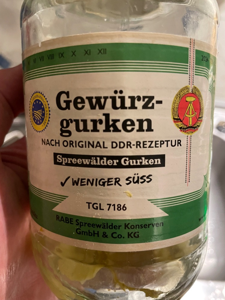 den hat gg gemacht, allameng und ganz schlicht: pellkartoffeln, gewürzgurken (wir hatten gerade spezielle auf, siehe foto), gewürzgurkenlake, mayonnaise, öl, altmeister weinwürziger essig, salz, frisch gemahlener schwarzer pfeffer