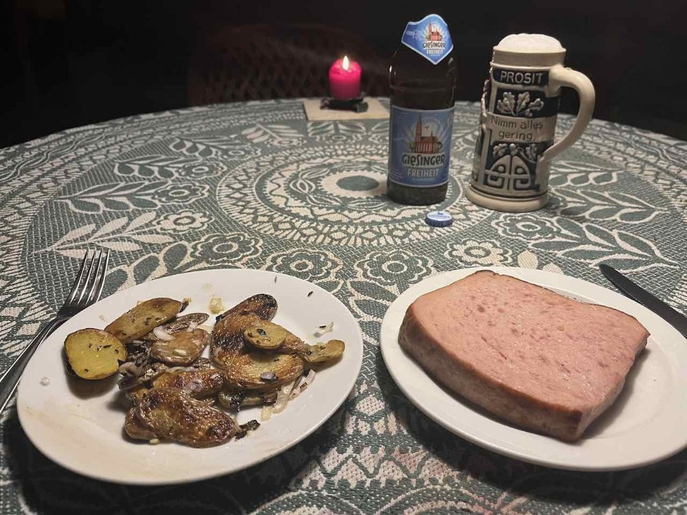 Münchner grober Leberkäs gedämpft und Bratkartoffeln zur "Giesinger Freiheit"