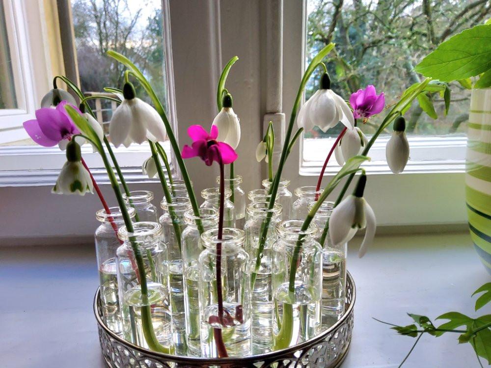 Die Schneeglöckchen in den kleinen Phiolen sind jedes Jahr und in allen Variationen großartig