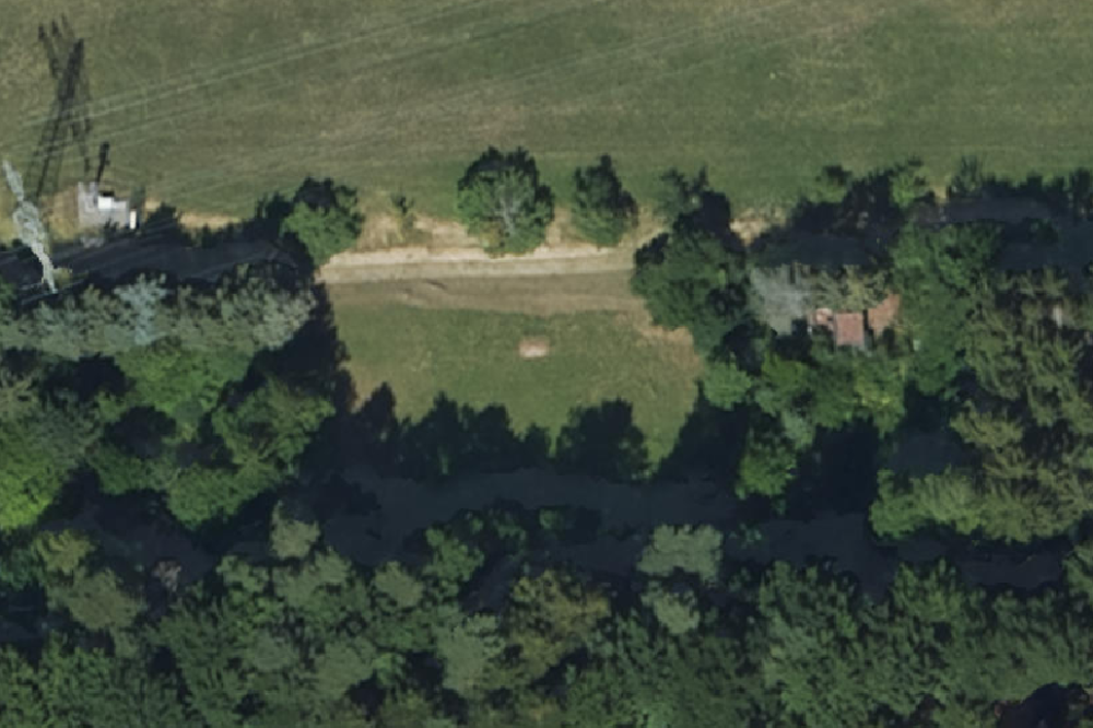 Nur halt nicht umzingelt von Wald und als Grünland ausgewiesen.