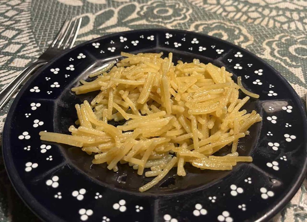 Orecchiette mit Spinat, Chili, Sardellen und Mozzarella.