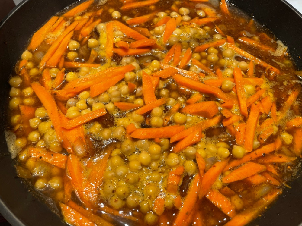 Hier gab es schnelle Küche: Kichererbsenpfanne mit Hack und Schafskäse. Lecker.