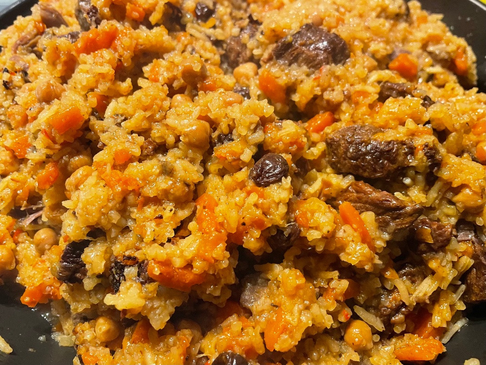 hier noch zwei fotos vom palov, leider spielte der reis nicht wie geplant mit und es wurde nicht locker-fluffig, sondern pamps.
