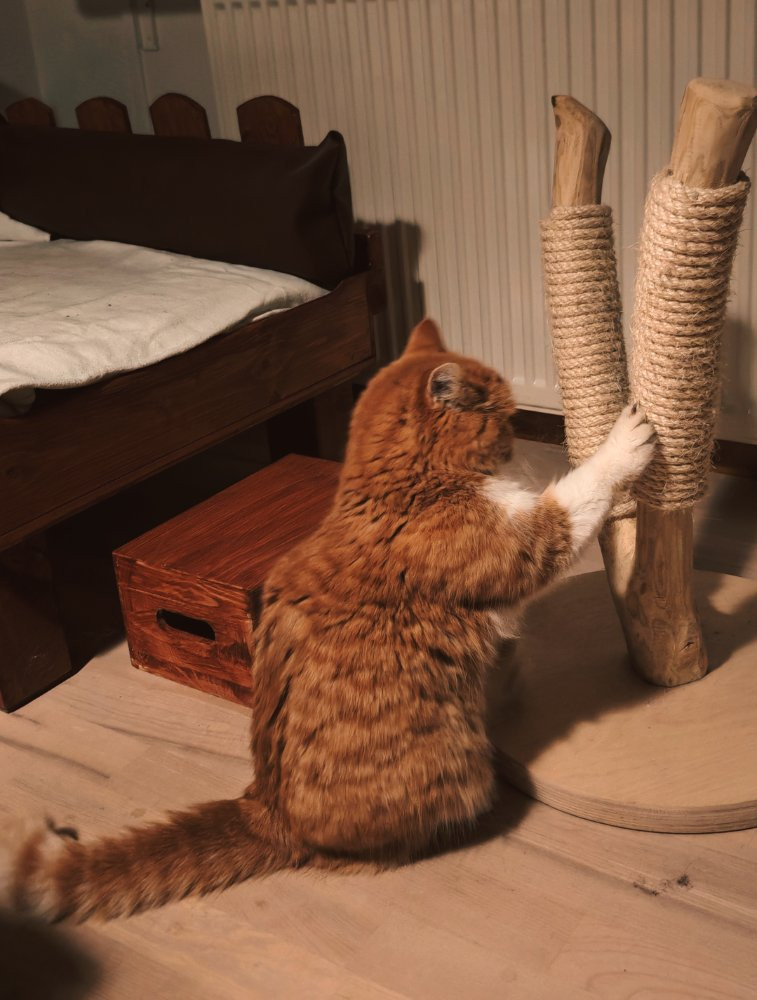 Und schwups ist das Pfötchen wieder frei, und man tut so, als habe man eh oben den Kratzbaum polieren wollen