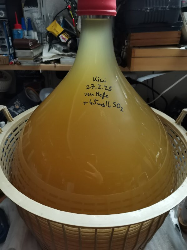 Mittlerweile ist der Kiwiwein von der Hefe gezogen.
