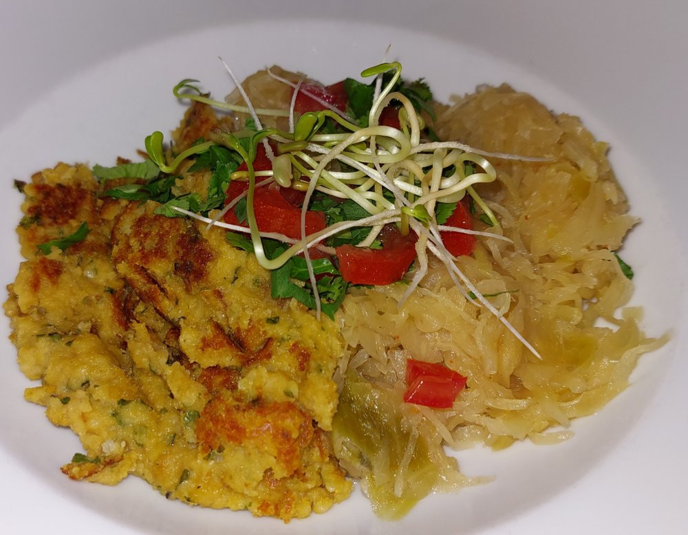 ...Und heute gebratenes Erbsenpürree mit Sauerkraut.