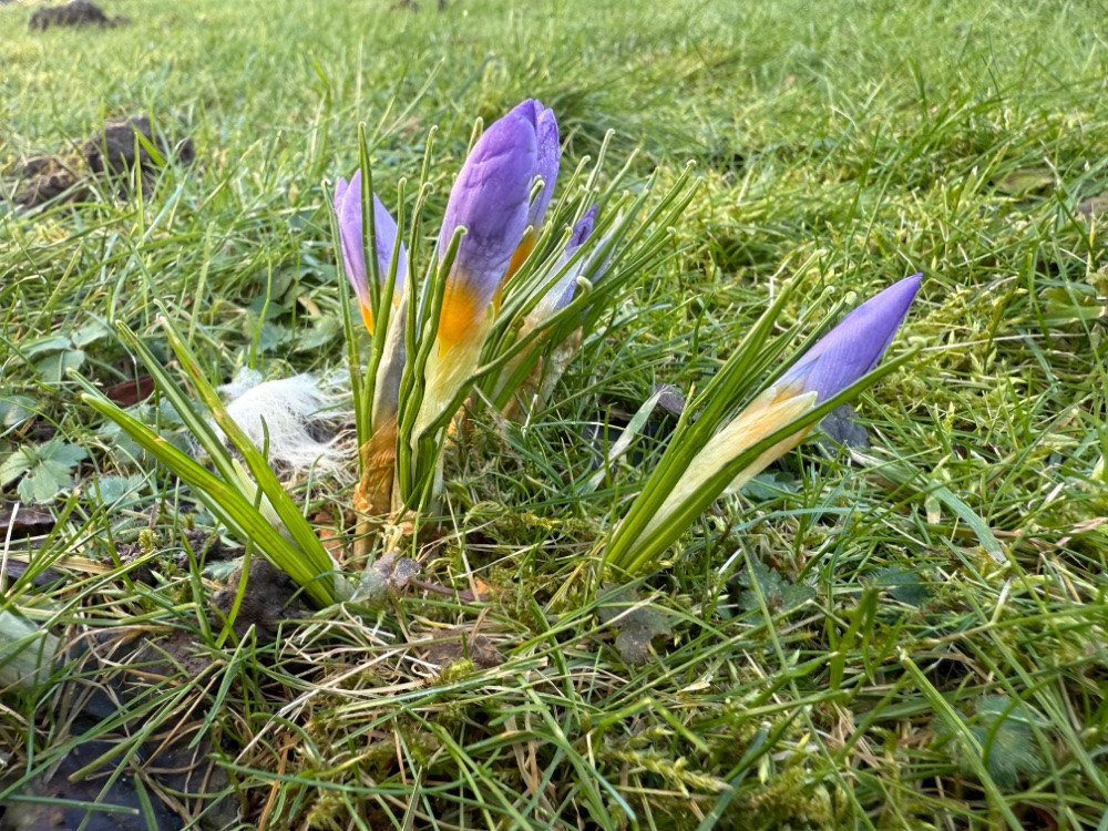 Hier zeigt ein Elfenkrokus erste Farbe, vermutlich die Art. Unheimlich früh!