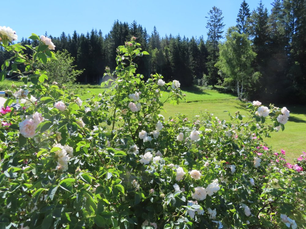 Natürlich nehme ich die Rose und zeige mal den gestylten Teil des Gartens. An Gehölzen sind Salix, Viburnum , Fraxinus und Corylus zu sehen.