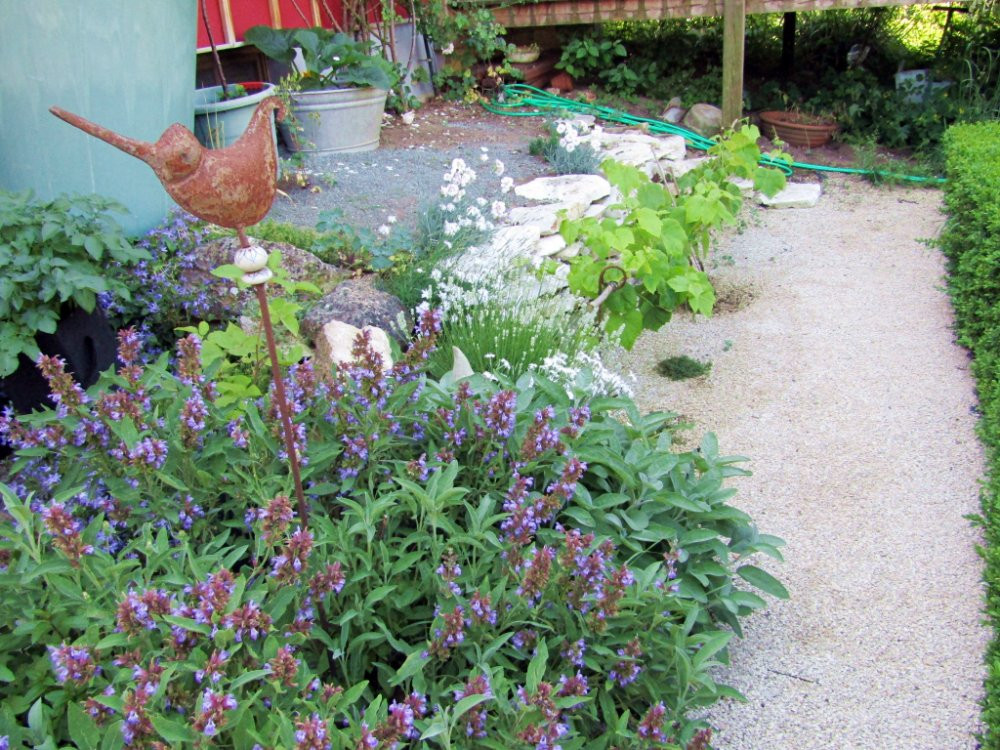 Polsterglockenblumnen gibt's hier auch, aber auch Salbei, weißen Lavendel, Wein, Federnelken...