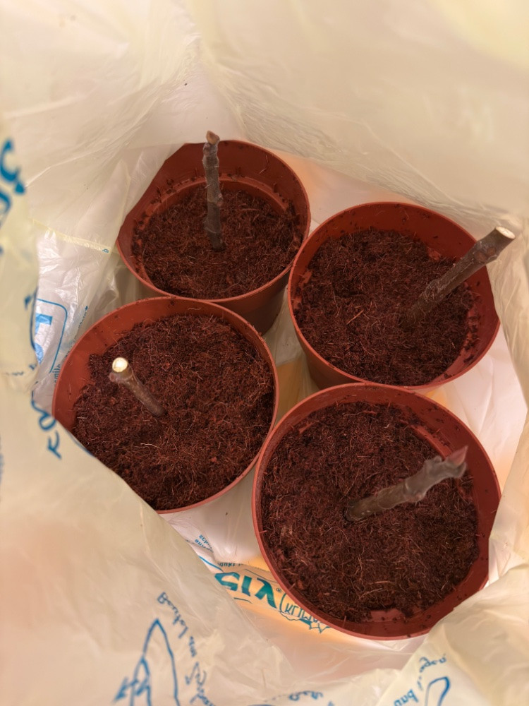 Hier die von Lokalrunde gesendeten 4 Hardy Chicago Stecklinge. Der 4. war geschenkt, danke an Lokalrunde