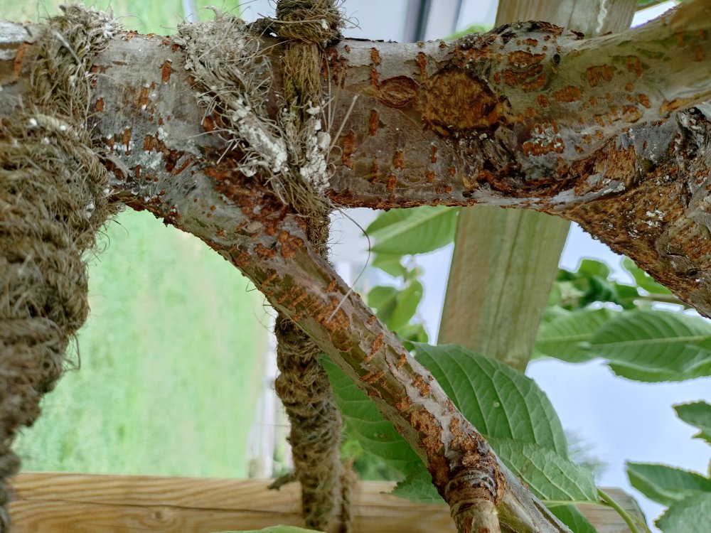Den zweiten möchte ich aber stehen lassen, da der mittentrieb in einem gegenwinkel wächst und es in weiterem verlauf, wenn der ast dicker wird ja passen soll, oder? Mit dem gegenwinkel wäre ja dann der astwinkel nicht mehr so spitz... Ist verständlich was ich meine.