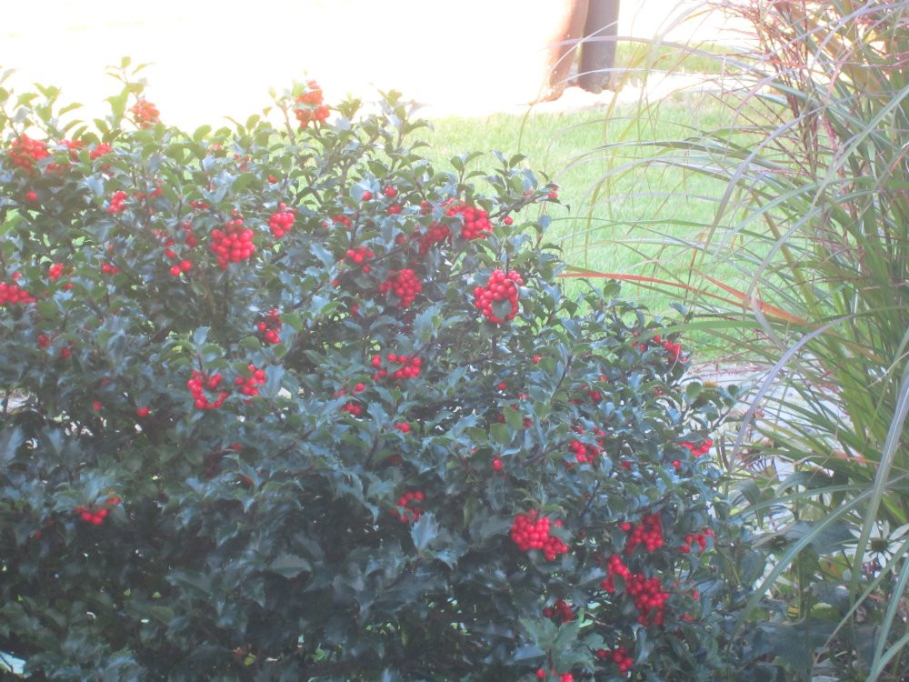 Ich hab damals dahinter direkt dran eine männliche Sorte gepflanzt, weil es sonst weit und breit keine Ilex in der Umgebung gibt, dadurch hab ich immer Beeren an Alaska.