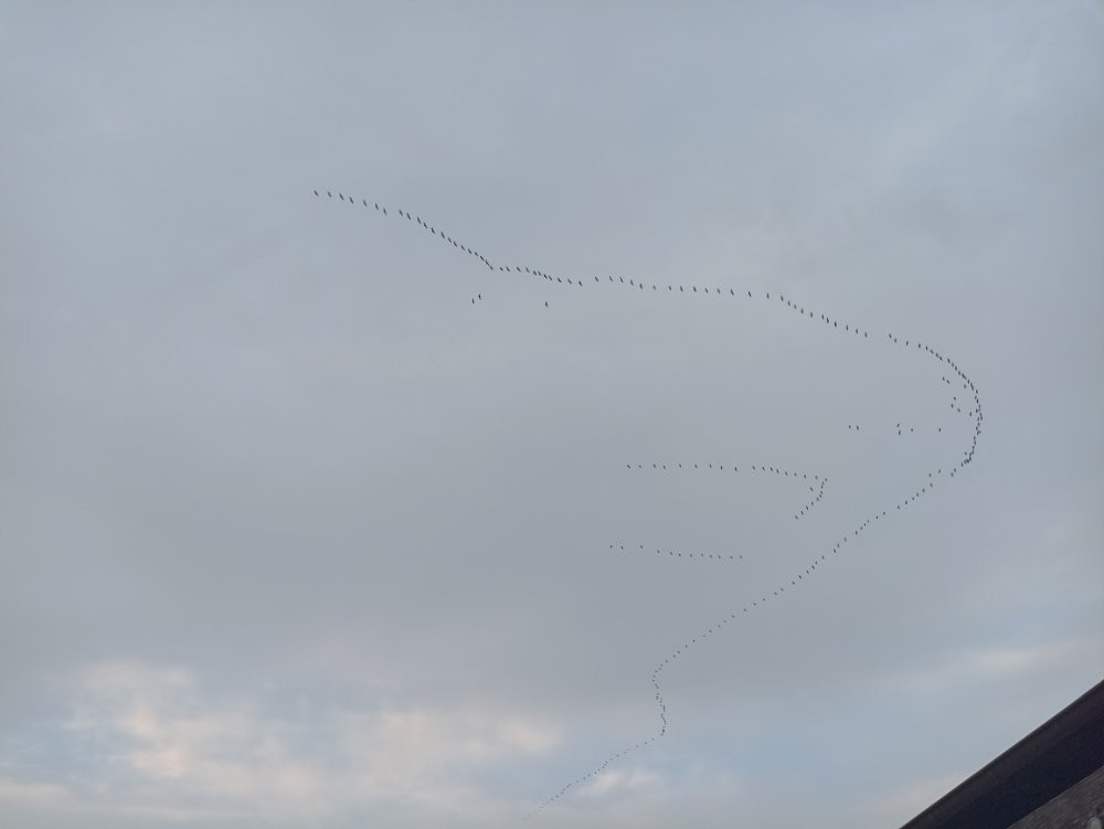 Heute flogen auch hier den ganzen Tag immer wieder Kraniche in Richtung Südwest über das Haus. Leider ist nur ein Schnappschuss möglich gewesen.