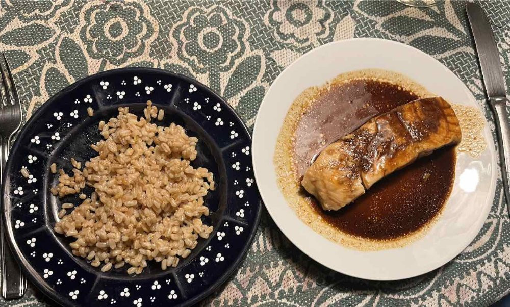 Lachsfilets asiatisch mariniert und gedämpft sowie Dinkelreis gedämpft zum Sauvignon blanc 2017 aus Kanada
