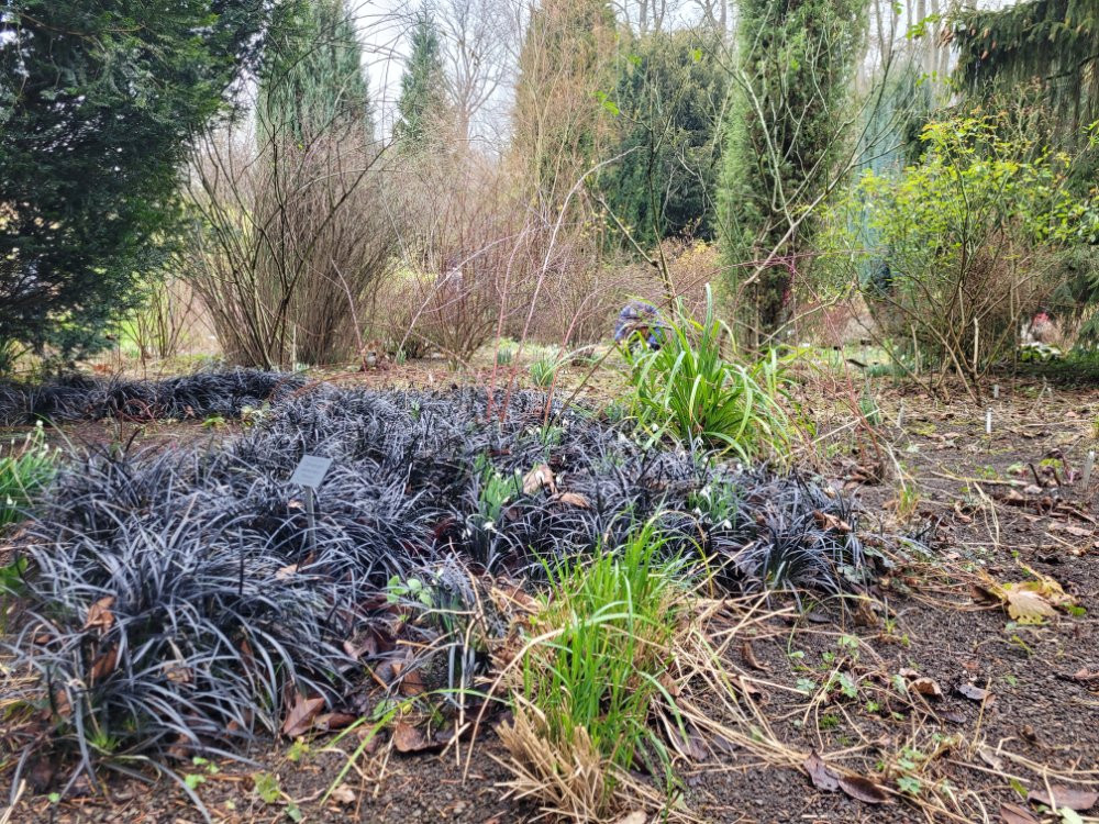 Schnell wird deutlich, daß es waldähnliche Situationen im Garten braucht um Galanthus wirklich gekonnt in Szene zu setzen. Hier werden beispielsweise mit verschiedenen Farnen, Schlangenbart, Bergenien, Carex oder Elfenblumen. Besonders auffällig waren mit ihren verschiedenen Blattzeichnungen die zahlreich verwendeter Aronstäbe. Hier alles relativ neu angelegt und im späteren Rundgang durch den älteren Waldpark meisterhaft flächig umgesetzt... ;D