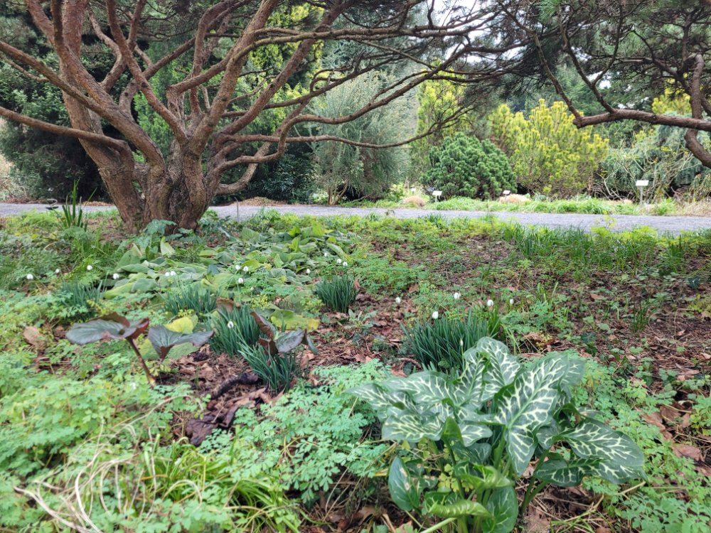 Im Waldpark kommen Gehölz Liebhaber voll auf ihre Kosten. Faszinierende Baum Persönlichkeiten sind hier auf einem großen Hang versammelt. Kombiniert mit herrlich dichtem, üppigem Bodenbewuchs. Die Grasflächen und die Kieswege sind voller Cyclamen und Crocus Sämlinge, man muß aufpassen wo man hintritt.