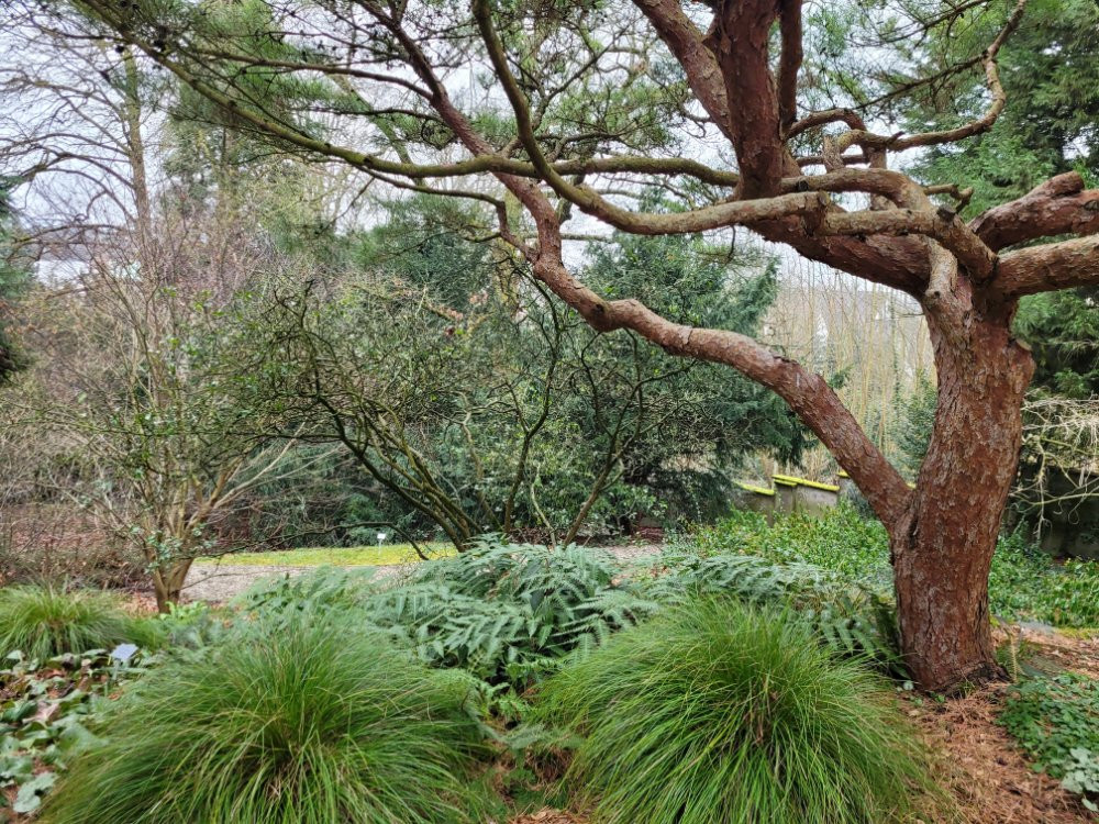 Im Waldpark kommen Gehölz Liebhaber voll auf ihre Kosten. Faszinierende Baum Persönlichkeiten sind hier auf einem großen Hang versammelt. Kombiniert mit herrlich dichtem, üppigem Bodenbewuchs. Die Grasflächen und die Kieswege sind voller Cyclamen und Crocus Sämlinge, man muß aufpassen wo man hintritt.