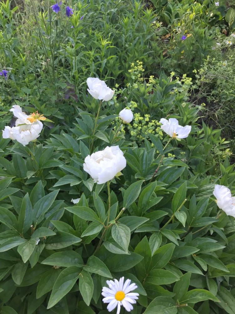 Dann nehme ich auch eine Paeonia, daneben Rosen.