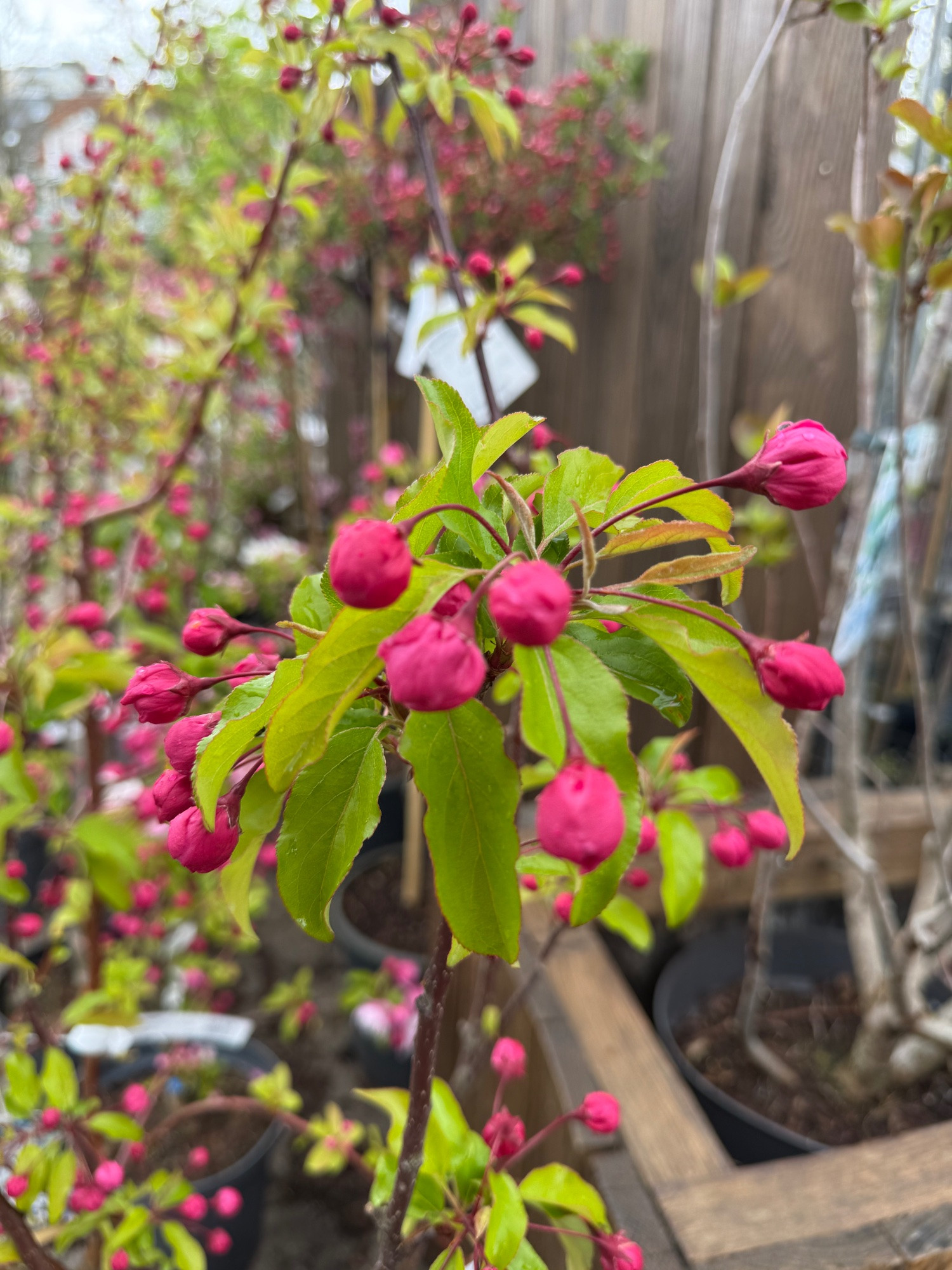 Im im Baumarkt blühen einige Zieräpfel. Aber bis auf Tina und Rot blühende Sorten lassen Sie sich nicht wirklich gut unterscheiden.