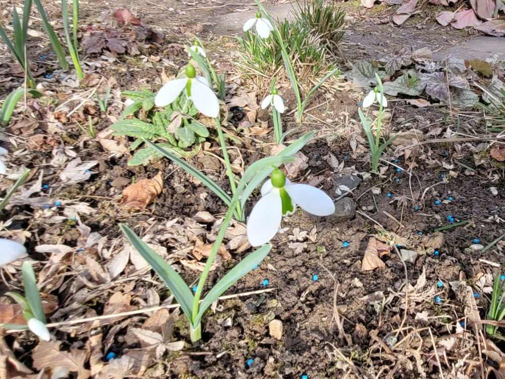 Wer Chef über diese Schneeglöckchenherde ist dürfte klar sein. Der Chef mogelt aber ein bisschen, steht ein klein bisschen höher.