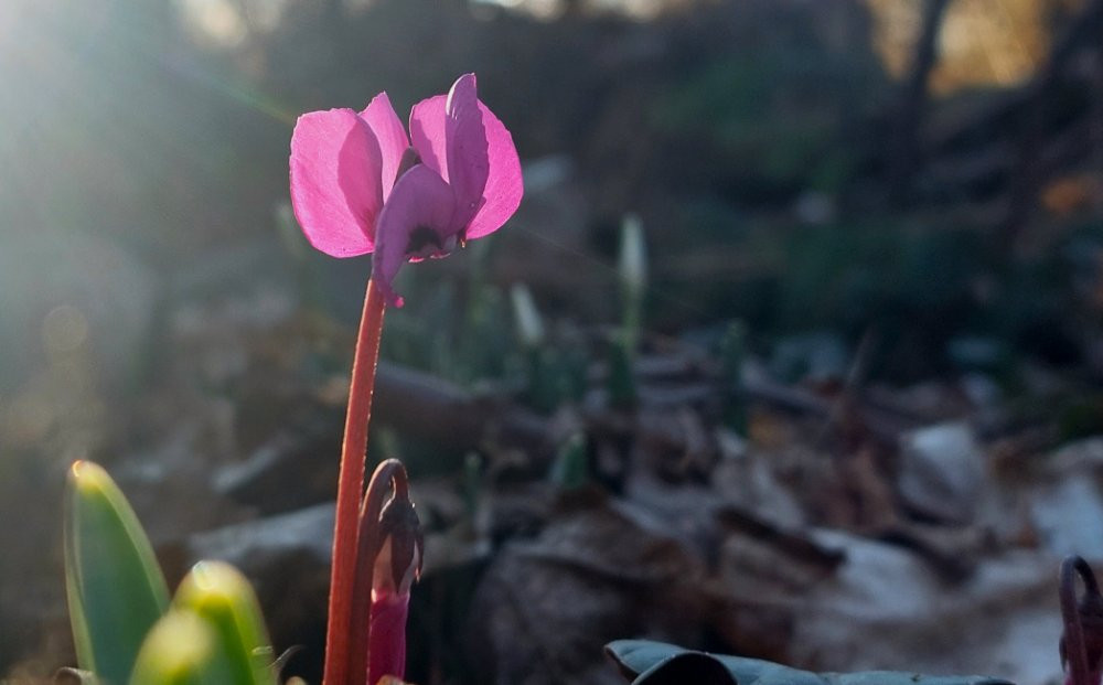 Hier ist der Schnee so gut wie weg, der Barfrost macht den Cyclamen wenig aus.