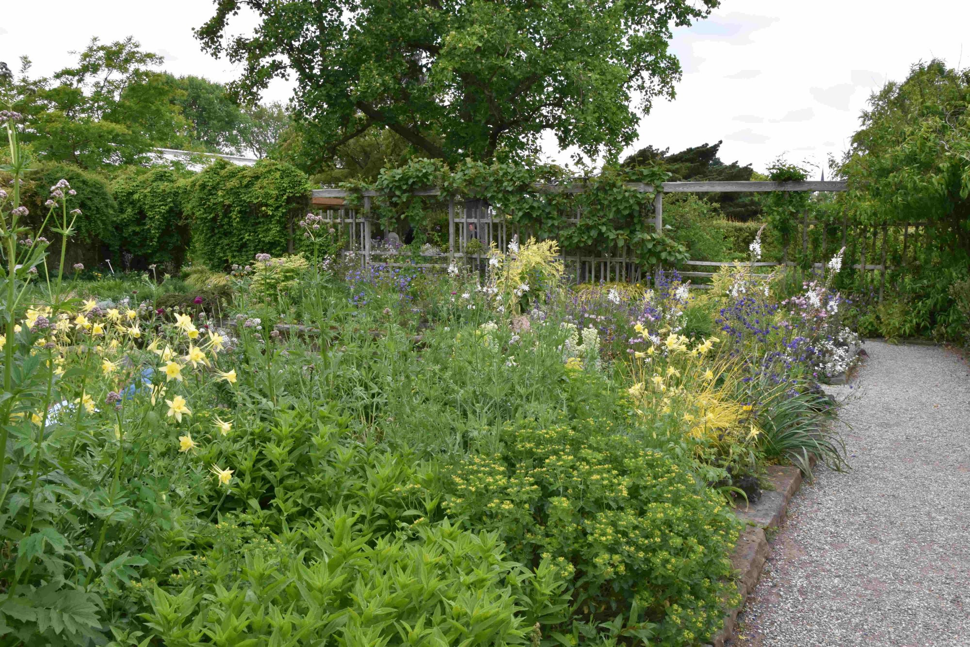 Viel Gelb und Blau, hier Akelei ...... und Iris