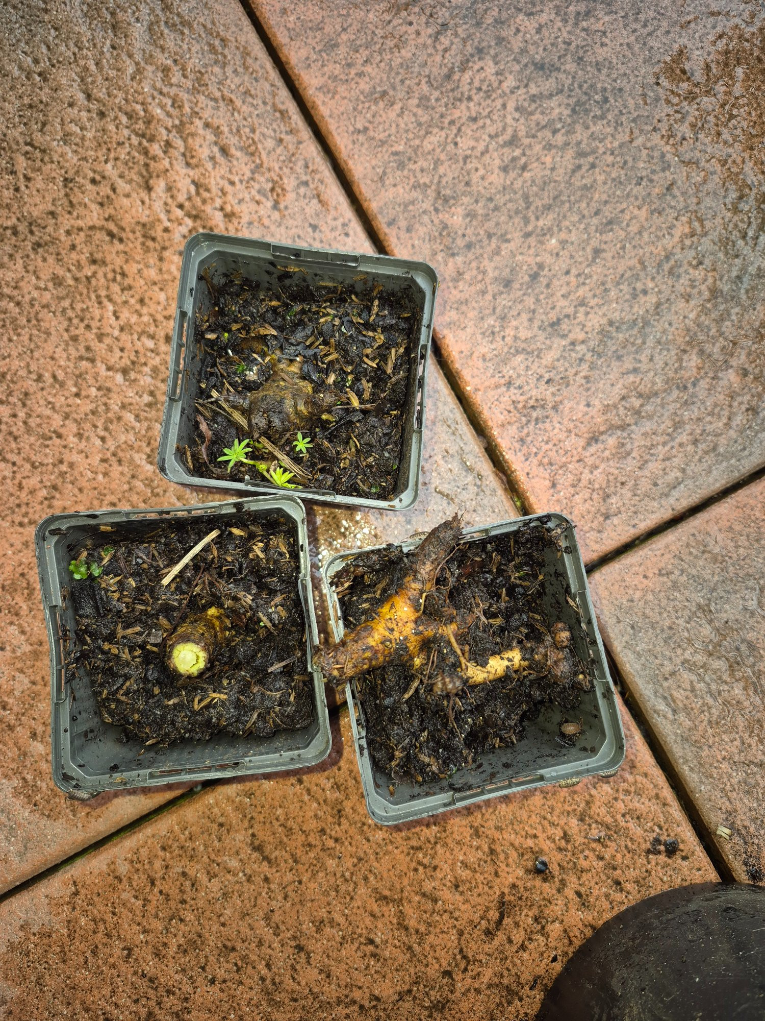 Auf Bildern wurden große Pflanzen in Blatt und mit Blüten in 1-L-Töpfen inkl. Sortenschild beworben. Geliefert wurden dreckige unbeschriftete Kleincontainer wie von der Resterampe. Sowas hasse ich, immerhin habe ich auch ein Farbkonzept. Erde tropfnass und voll mit Asseln. Ein Rhizom war bereits brauner Matsch, zwei hatten völlig verfaulte Wurzeln und sind widerstandslos aus der "Erde" geglitten. Die dritte Pflanze hat etwas Leben bewahrt und eine winzige Austriebsknospe (meine Lupinen im Garten und in Töpfen haben bereits Unmengen an Blättchen).