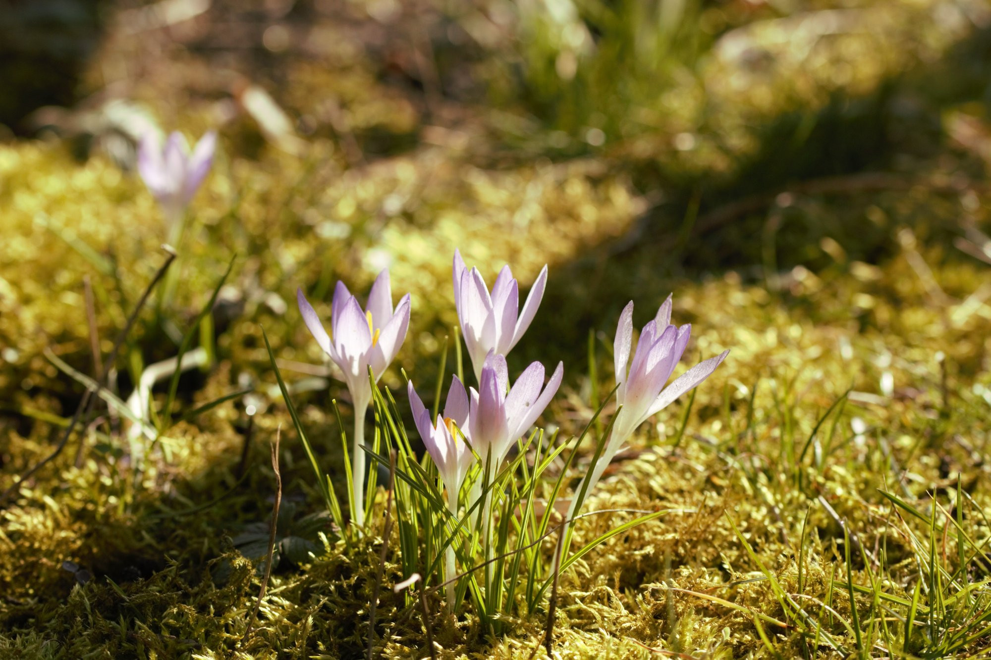 Bis meine "Krokuswiese" entsteht, stirbt alles Gras weg... Die "Zwergbäumen" sind inzwischen zu gross, und ab Mai ist kaum Sonne da. So wachsen die Krokusse aus Moos heraus. So sehen aber auch gut aus. :)