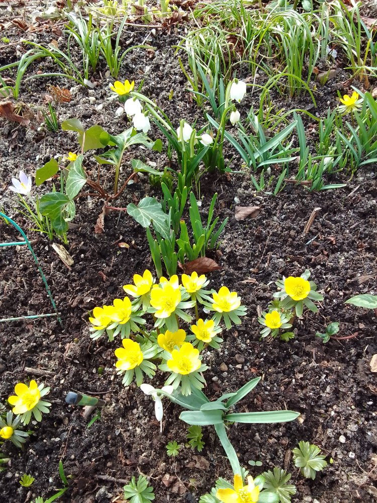 Als wir vor gut 40 Jahren hier eingezogen sind, gab es einen hübchn Tuff Leucojum vernum, die Vorbesitzerin wollte sie eigentlich noch ausgraben und mitnehmen, das hat sie dann aber zum Glück nicht getan.