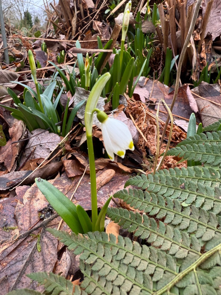 Als wir vor gut 40 Jahren hier eingezogen sind, gab es einen hübchn Tuff Leucojum vernum, die Vorbesitzerin wollte sie eigentlich noch ausgraben und mitnehmen, das hat sie dann aber zum Glück nicht getan.