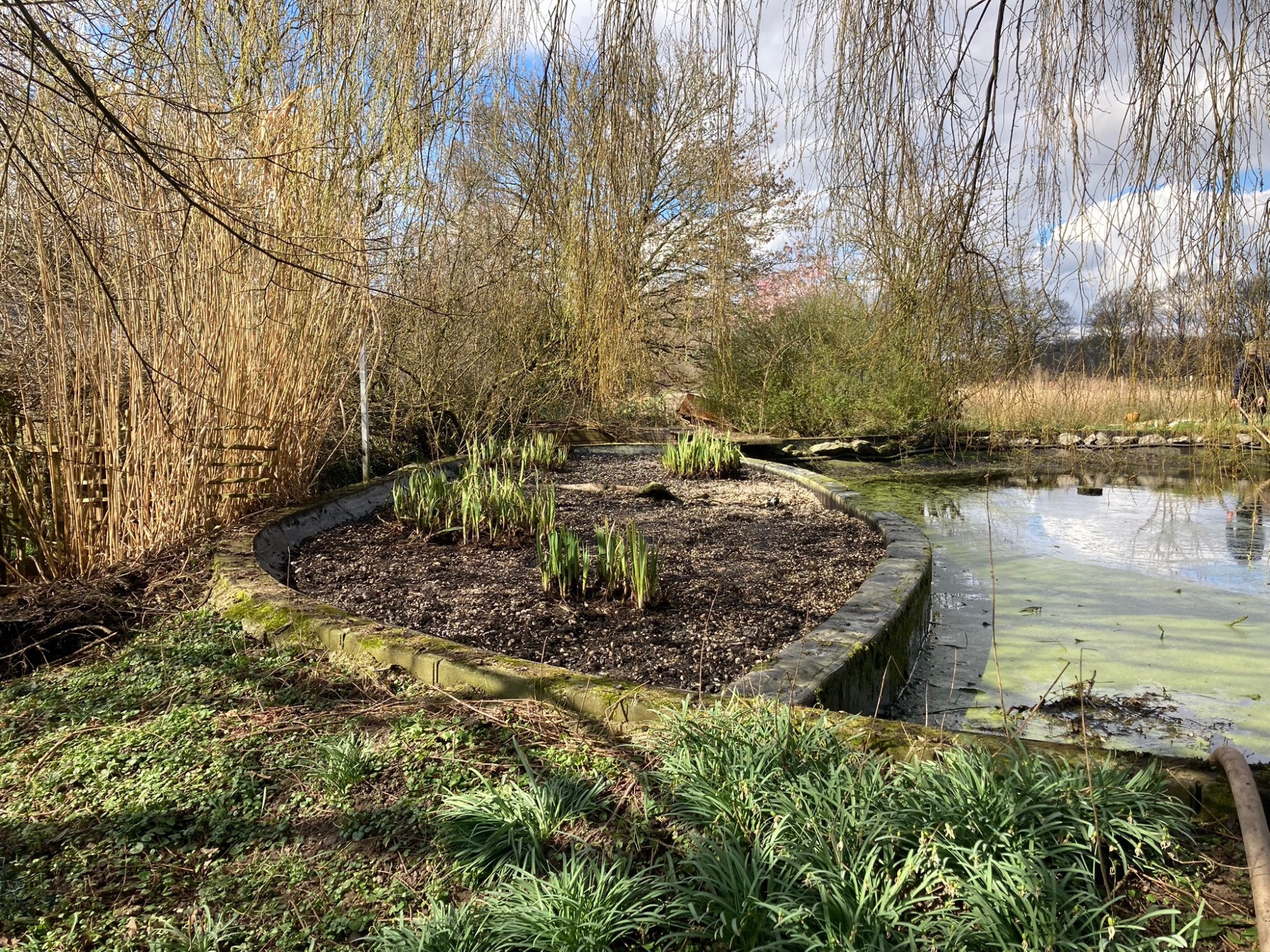 Hallo Acontraluz, hab gerade gesehen dass dein Teich schon wieder einer Sanierung bedarf was mich nach kiso einer kurzen Zeit schon etwas wundert. Du hast ja einen Filterteich mit Umwälzpumpe, da sollten ja schon so einige Nährstoffe sich in Pflanzen Masse verwandeln. Anscheinend reicht das nicht aus und um diese Zeit sollten ja weder Schwebalgen noch Fadenalgen im Wasser sein wegen der tiefen Temperaturen. Ich habe fast die Vermutung dass das Übel die riesengroße und wunderbare Weide mit der enormen Blattmasse sein muss.