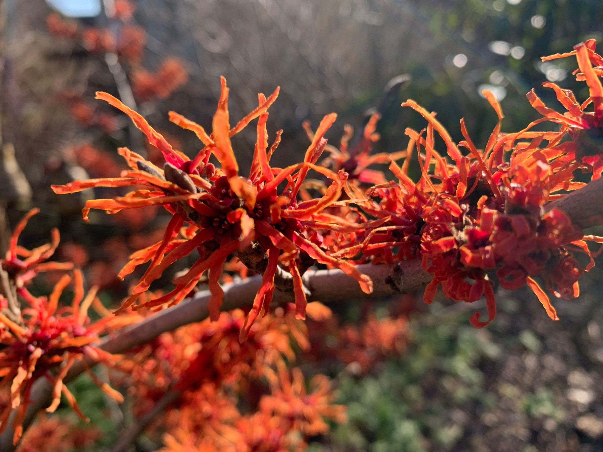 Hier sind die meisten Hamamelis nach vielen Wochen, dabei unbeeindruckt von bis zu -11°C, so langsam am verblühen