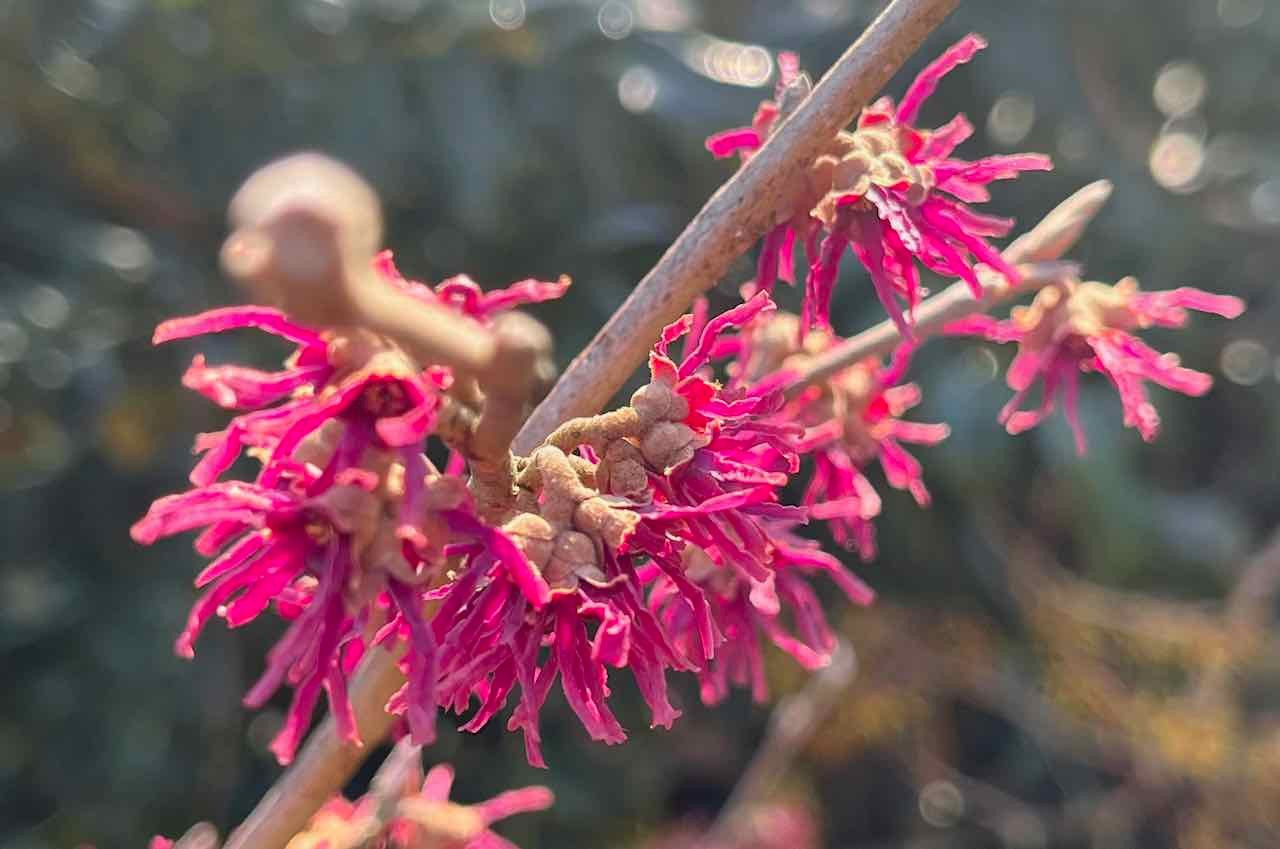 Die pinkfarbenen Hamamelis sehen ja toll aus. Ich glaube, so eine brauche ich auch. Bisher habe ich je eine in Gelb, Orange und Rot – wobei Feuerzauber bei mir gar nicht so rot, sondern fast orange rauskommt.