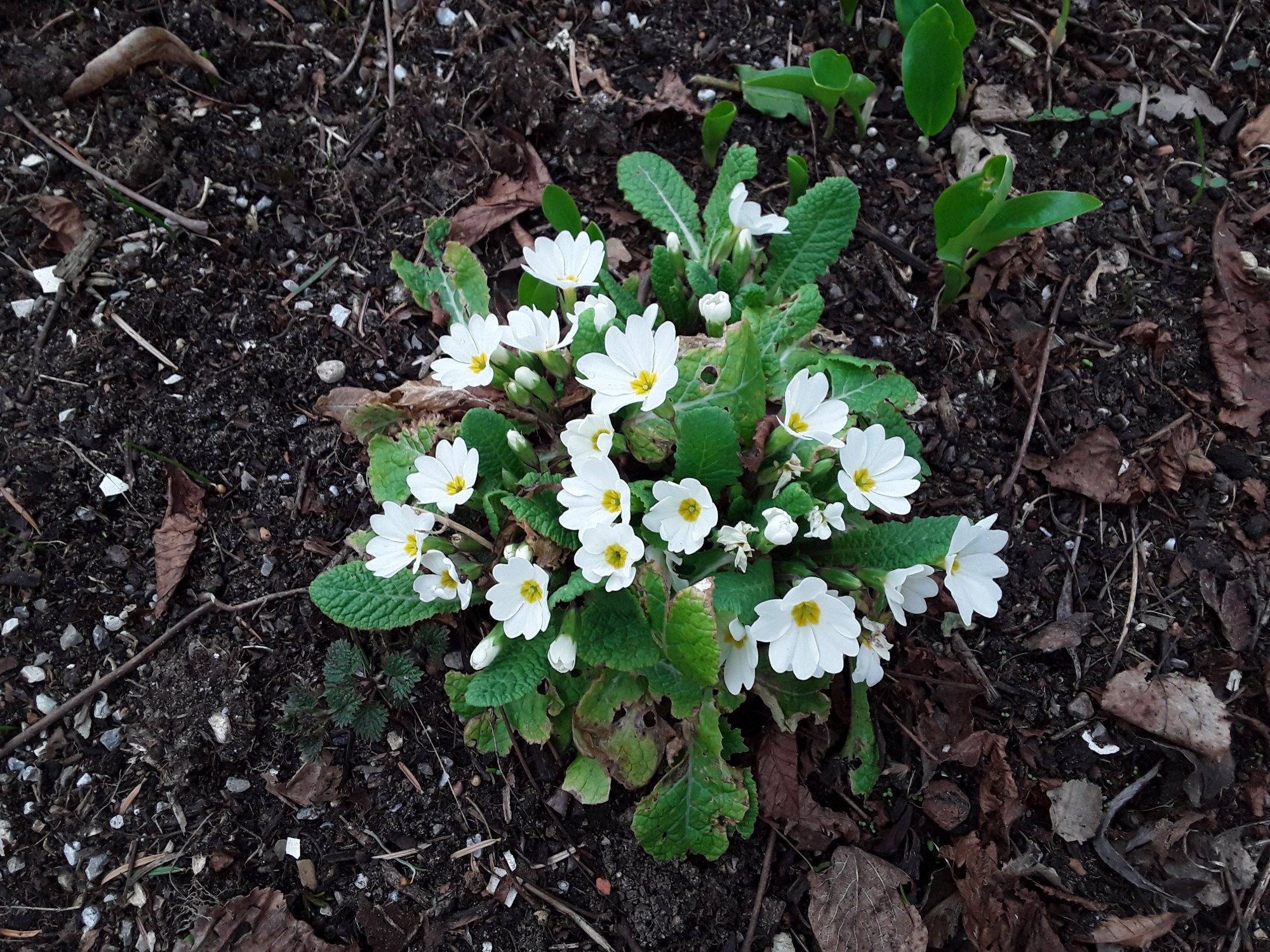Eigentlich hat es mir in dieser Ecke zu viele Primel-Sämlinge (und Duftveilchen), die ich ausjäten wollte. Bei dieser tollen Farbe bin ich froh, dass ich es noch nicht getan habe!