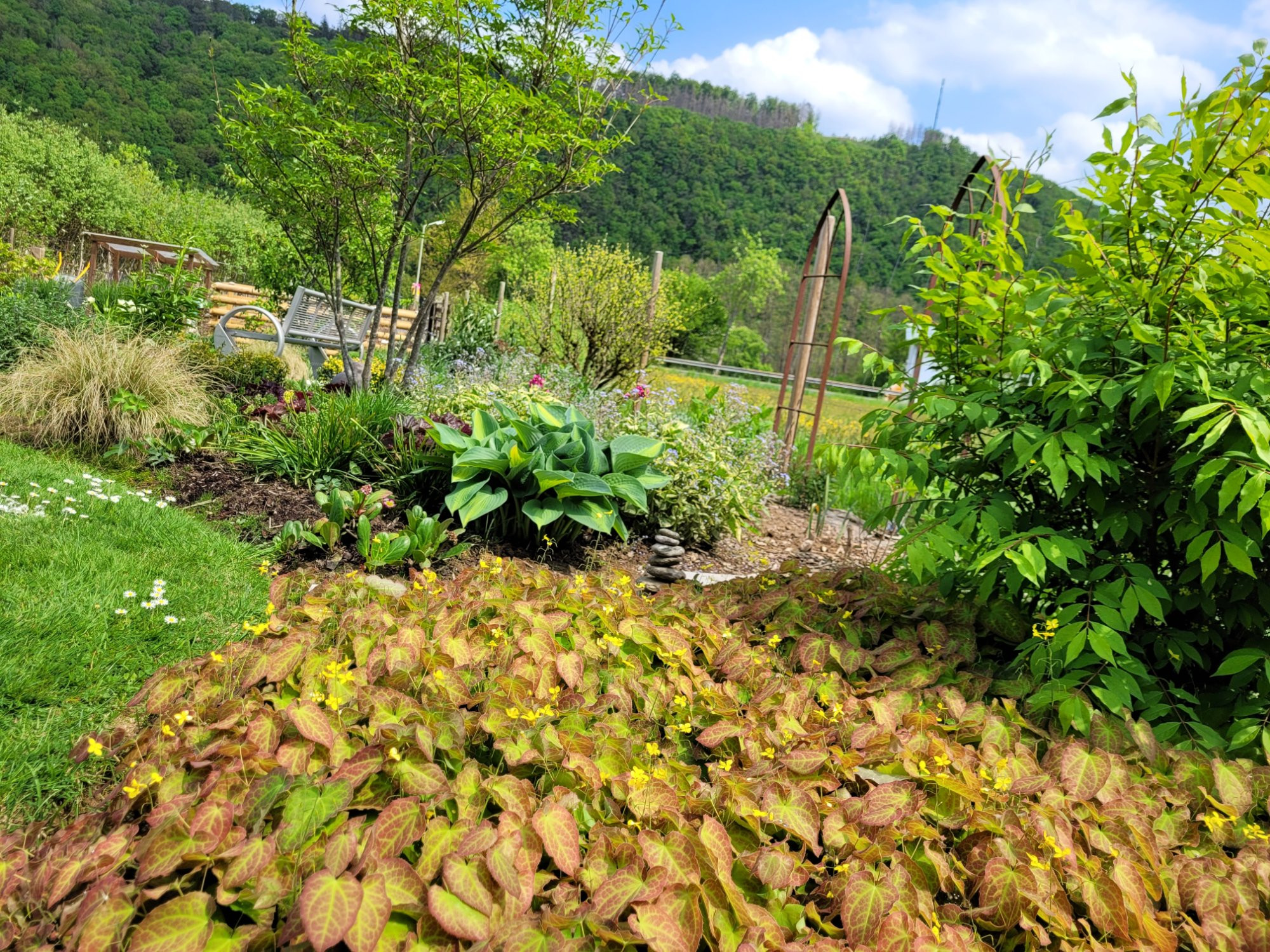 In eher sonnigen bis halbschattigen Lagen macht sich auch Phlomis Russeliana gut mit ihrem dichten Wurzelfilz. Da kommt nichts durch... genau wie bei Epimedium.